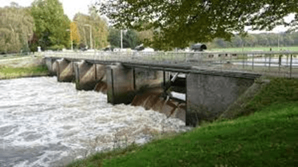Het verval is zelfs zo groot, dat er een paar stuwen zijn gemaakt, waaronder die vlakbij ons, bij Vilsteren bijvoorbeeld.
