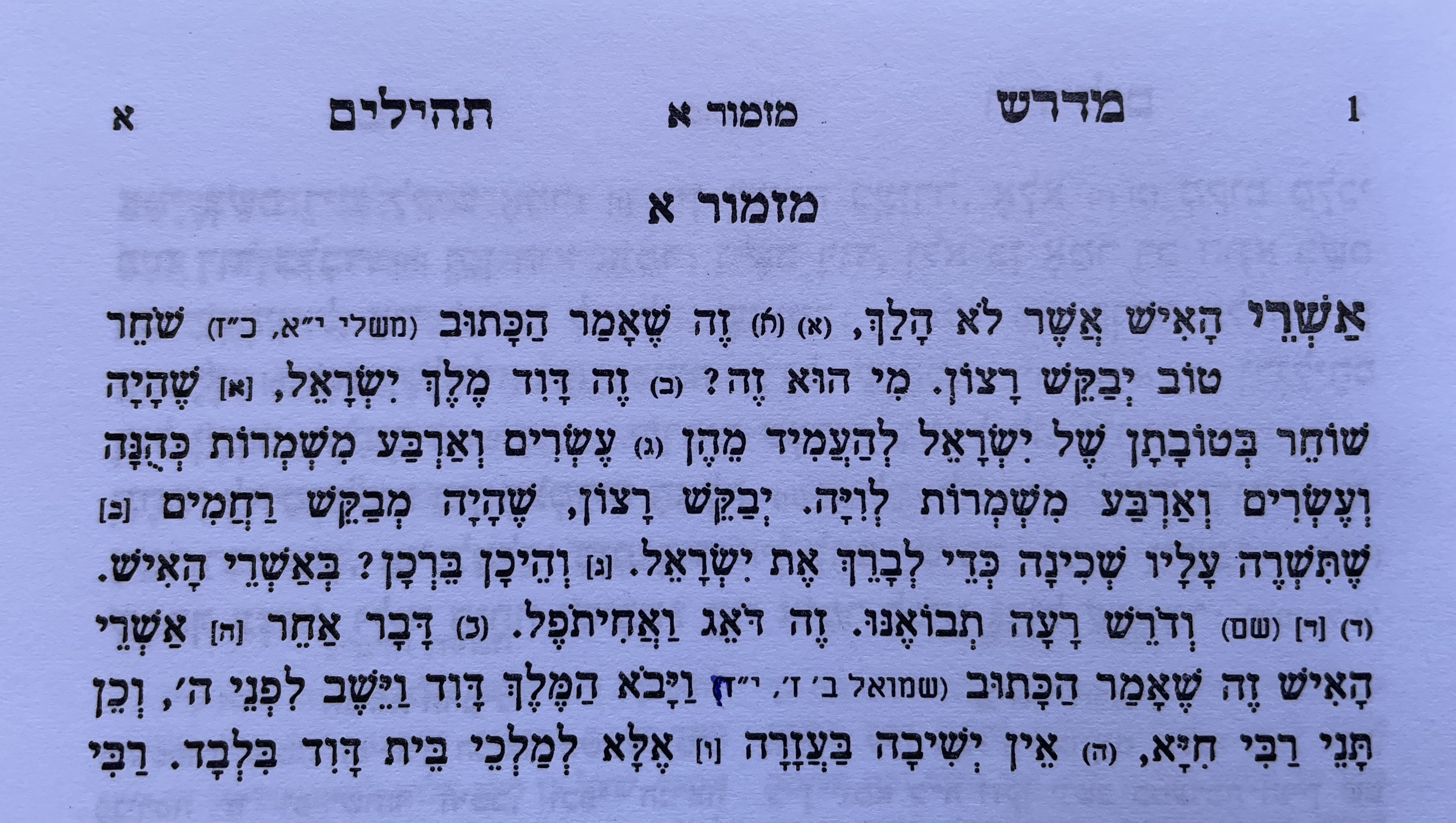 In mijn kast staat een boekje dat ik kocht in Jeruzalem: de Midrash Shocher Tov (ook wel de Midrasj Tehillim genoemd). Een boekje, komend uit zeker al de 11e eeuw, met oude Joodse uitleggingen bij de psalmen. Hieronder zie je er een stukje uit.